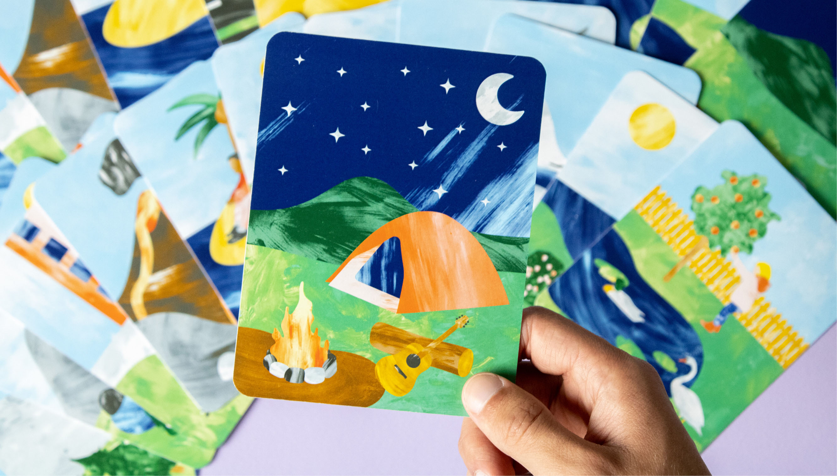 Les paysages est un jeu de cartes issu du projet Des nœuds dans la tête, qui vise à créer de nouveaux outils à destination des professionnels de santé, des parents et des enfants ayant un trouble développemental du langage (TDL).